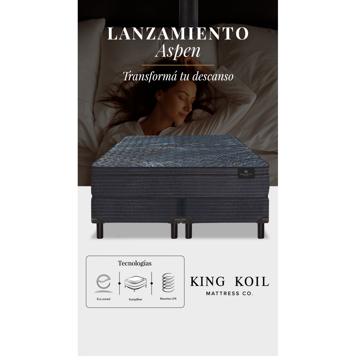 Conjunto de resortes marca King Koil, modelo Aspen King (180x200)